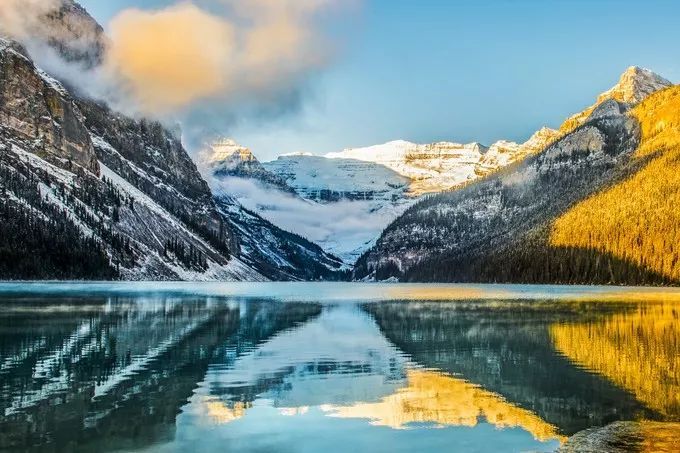 露易丝湖最美的时间就是 清晨和傍晚 ,金色阳光洒向湖面,更显神圣纯洁。如果条件允许,还可以租艘小船飘荡在湖面,仿佛 身处梦境……