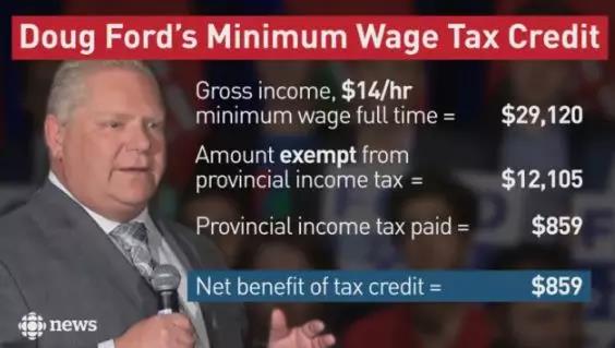 安省保守党政府早在今年 4月省选竞选时,就提出如果保守党获胜,福特当上省长,从2019年1月开始,承诺为拿最低时薪的员工免除安省收入税,也就是说,如果你的年收入低于3万加币,你就不用纳这笔税。
