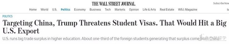 而最近,中美贸易摩擦或许蔓延到高等教育领域,通过《华尔街日报》报道,美国政府考虑限制给中国留学生发放签证,作为对华贸易逆差的反制措施。