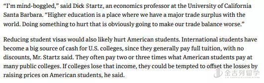 真想通过“限制留学生签证”的举措来反制对华贸易逆差,美国大学或将是直接受害者。据加州大学圣塔芭芭拉分校经济学教授Dick Startz称,国际学生通常需要缴纳全额学费,这是美国本土学生付给公立学校学费的2-3倍。如果美国大学失去收入,可能会试图通过提高美国学生支付的费用来弥补损失,减少留学生签证可能伤及美国学生。