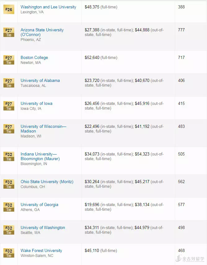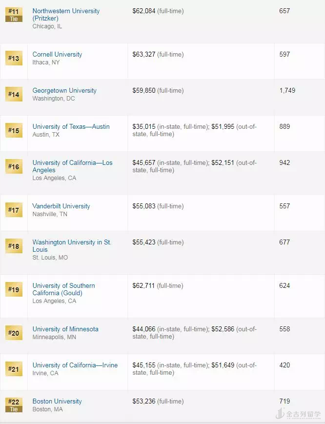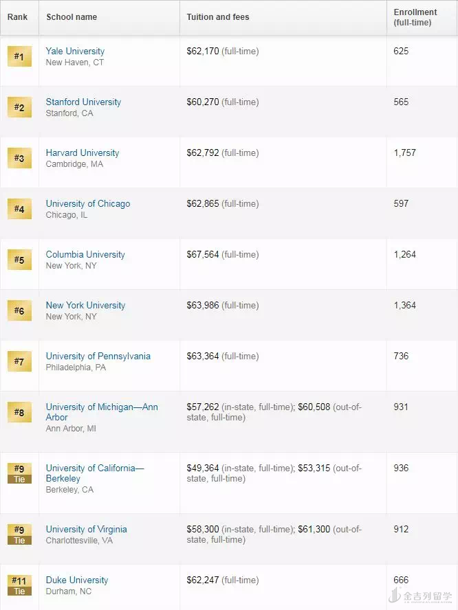 > 2019年USNews全美最佳研究生法学院