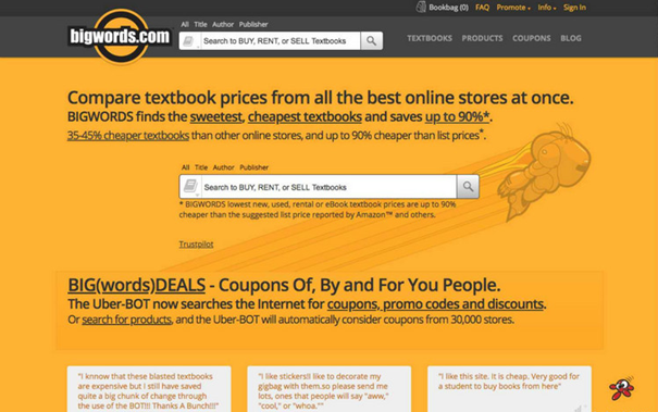 在书贵到不行的美帝读书,绝对不能没有它。通过 Bigwors 网站,你可以货比三家,找到最最实惠的书本,你只要把想买的书名称输进去, Bigwors 会告诉你如何买到最便宜的书。
