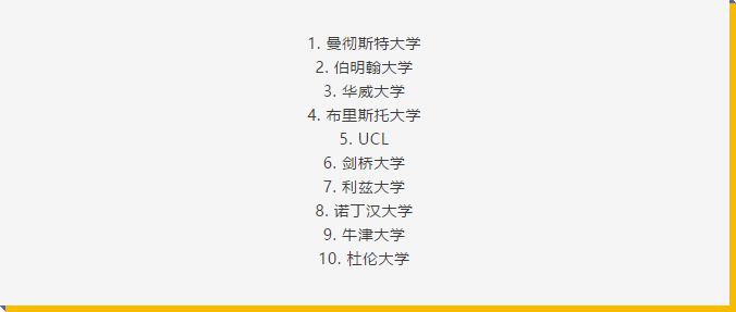 需要提醒大家一下,这个排名是根据英国就业市场的情况来评定的哦,和国内公司的标准还是不太一样。这次曼彻斯特大学喜提第一,和伯明翰,华威,布里斯托, UCL 的毕业生占领了榜单前五,给曼大鼓鼓掌!