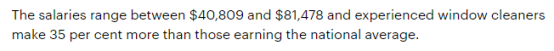 首先,做门窗清洁在澳洲的基本年薪在 $59056澳元 ,