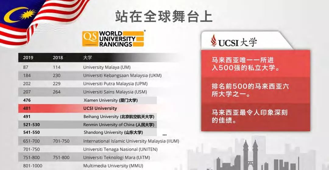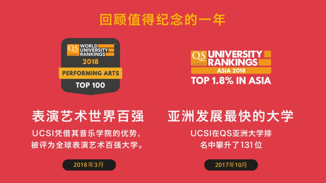 学校以 “无畏、坚毅、诚信和精进”为办学原则,32年的办学和传承永续,于2003年成为有史以来第一所被马来西亚教育部批准开设医学类课程的私立大学。UCSI大学是中国教育部第一批承认学位学历的马来西亚的大学,同时也是 全马唯一一所 QS世界排名前500强的私立大学,在全球所有大学中排名前2%。
