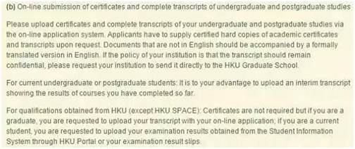 必须持有认可大学颁发授予的学士学位或硕士学位(港大的 PHD 项目要求申请者拥有荣誉学士学位和硕士学位或一等荣誉学士学位)