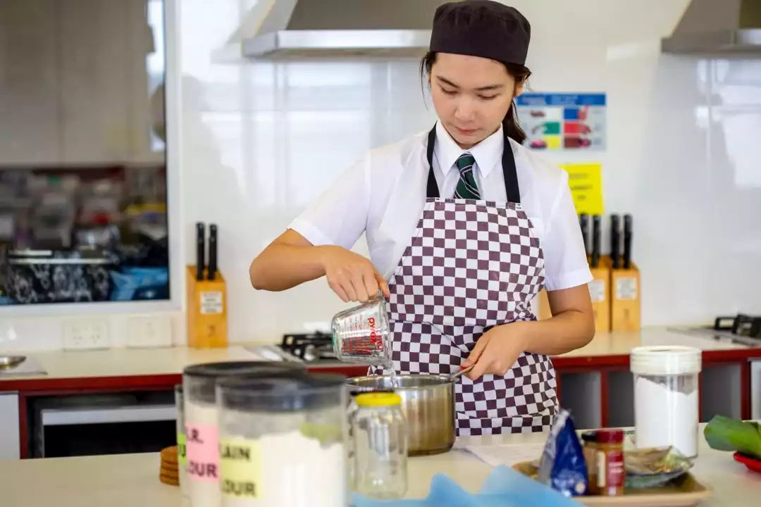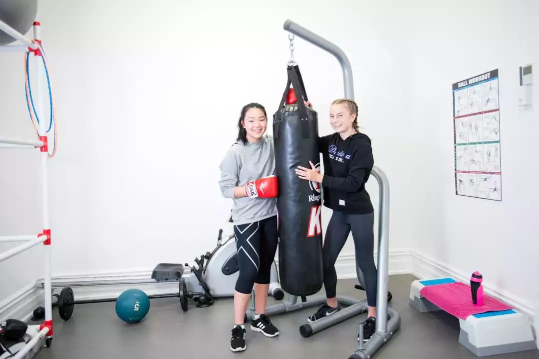 • 课余时间,女孩们在宿舍里可以来到影音室看电视电影,可以去健身房健身,也可以去厨房和朋友们一起烹饪做甜点。