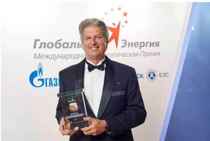 他最近在莫斯科参加了颁奖典礼,并从俄罗斯能源部长诺瓦克手中接过奖杯。