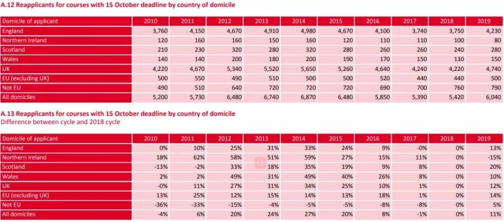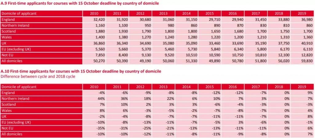 英国本土45,650人申请,创新纪录,比2018录取周期同一阶段的41,970人增长了9个百分点。