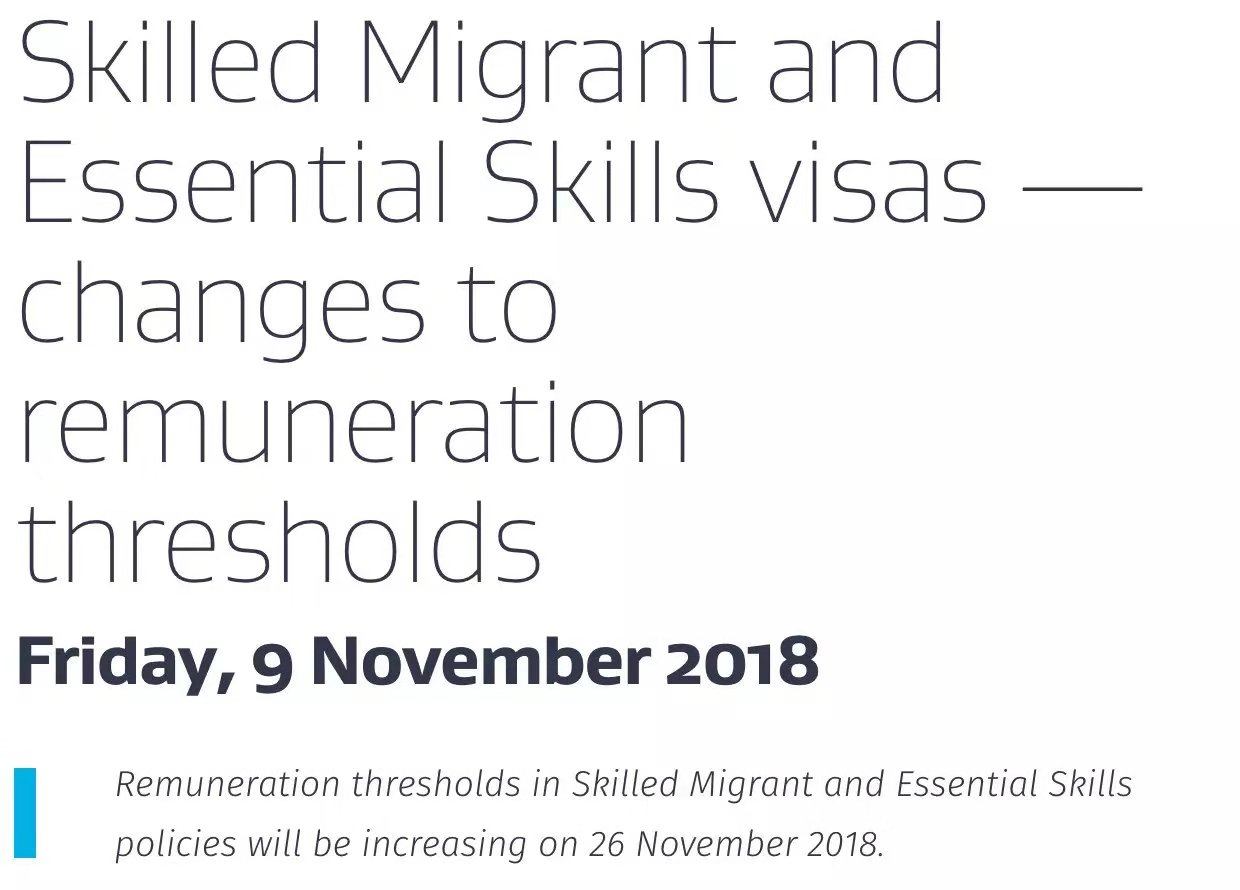 突发!今天新西兰移民局公布了最新的技术移民工资标准,新标准将在 2018年11月26日正式实行。
