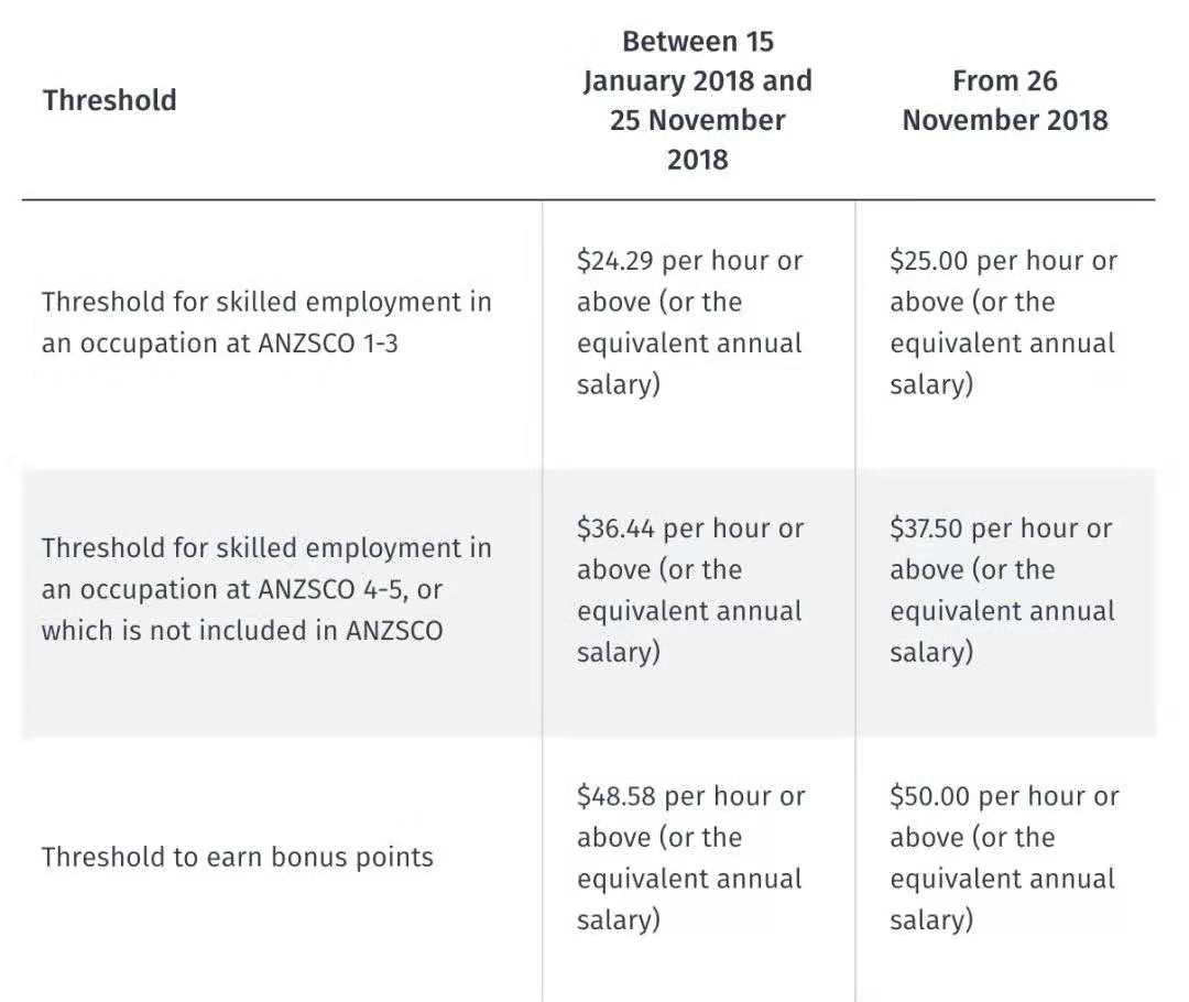 高收入人群加分标准: 由 48.58纽币/小时 上涨 至 50纽币/小时