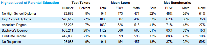 其实这并没有什么科学依据,顶多是学历高的父母能更多的意识到孩子学习的重要性,尽可能的给孩子营造好的学习条件,这部分学生就有机会在 SAT成绩上有一个好的表现。但这个真不能作为SAT成绩差的理由。