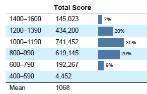 总分 1400+ 的同学,就已经超过了全球 93% 考生,去年 1400+的考生占比6%,今年上升了1个百分点,共有 14.5万 考生。