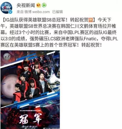 电竞圈一直都是“圈地自萌”,圈外的人完全不懂圈内发生了什么事情。但是,相信大家周六周日已经被朋友圈激动的分享刷了一天的屏,很多人度过了一个无比激动的夜晚。