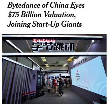 Byteance of China Eyes $75 Billion Valuation, Joining Start-Up Giants