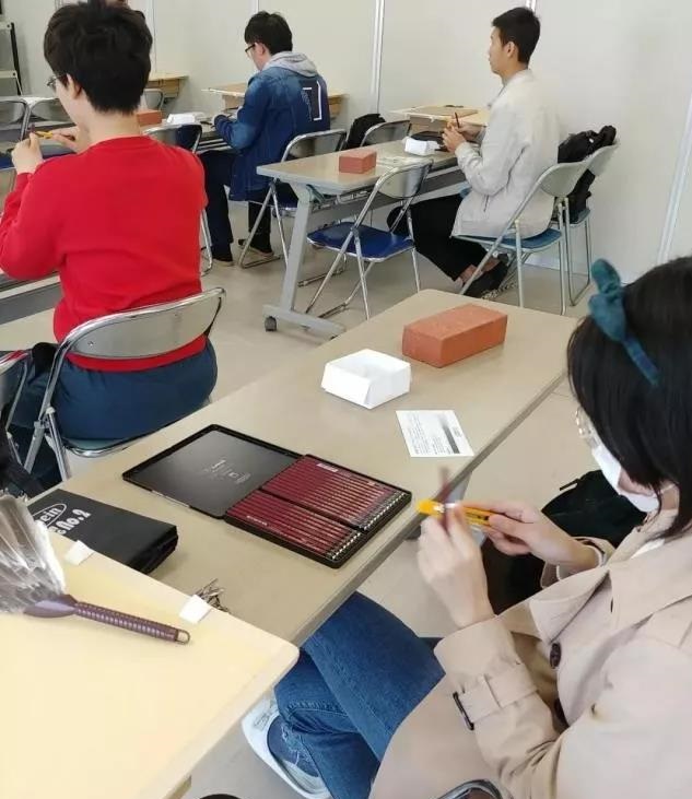 削完铅笔,准备好工具,老师正式开始讲解画素描时的姿势以及画法。