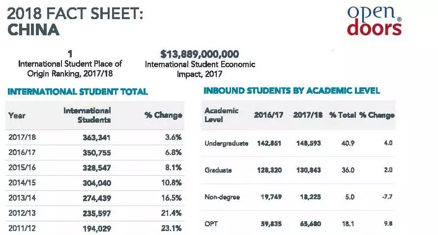 今年发布的 2017-2018学年 分析,从报告中看,来自 中国的留学生数量再创新高,又毫无悬念地成为赴美大军中的主力军 !下面让我们详细解读一下这份报告: