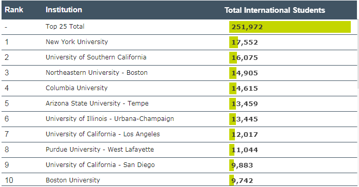 除此之外, 哥大、东北大学、亚利桑那州立大学、 UIUC、UCLA、普渡 接受留学生数量也不少。