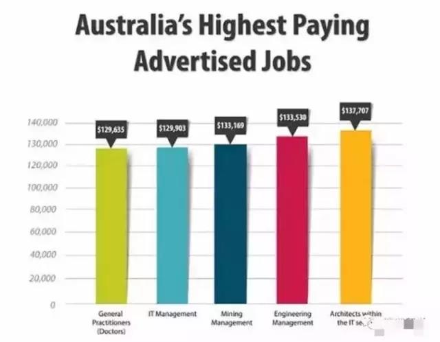 IT架构师 137,707澳元; 工程师 133,530澳元; 矿工 133,169澳元; IT经理 129,903澳元; 全科医生 129,635澳元;