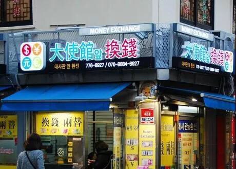 在韩国可以看到有大大小小的换钱所,各个大学附近也会有,一般换钱汇率最好的换钱所基本上都在明洞(比如大使馆附近),所以还是在换钱所换会比较划算,特别是有些时间久的换钱所还支持支付宝换钱哦!可以说是非常方便了 ~