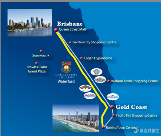 坎特伯雷学校位于昆士兰州东南部的 Waterfor区。学校的位置正处在布里斯班到黄金海岸的一半路程,从两地到校都是30分钟左右车程。附近有电影院和购物中心等生活设施。坎特伯雷学校的寄宿家庭都是从附近居民中静心挑选出来的。家庭自己的孩子也在我们学校上学。我们绝大部分的寄宿家庭都在学校附近的居民区,可以乘私家车或公交车到校。国际学生乘坐同样的公交线路前往布里斯班或黄金海岸的沙滩。