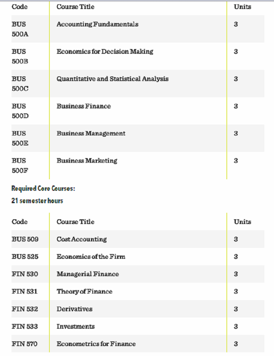 Learning Goals:Stuents in the M.S. Finance will grauate with;soli interpersonal, communication, an teamwork skills;a commitment to an ethical an socially responsible behavior in financial markets;the ability to utilize a holistic view of analysis an the evelopment of complex finance moels;problem solving an ecision-making skills in a ynamic environment;an unerstaning of the interrelationships between the theoretical an functional areas of finance; an