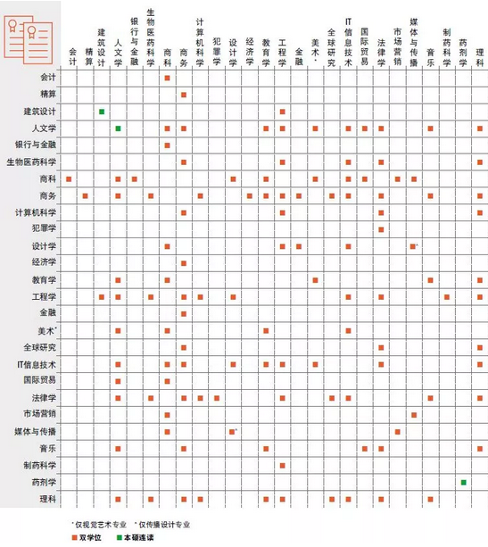 ** 在同样一份留学经历,毕业时能比别人多拿一个学位证书。这种“既省时又省钱”的学习规划就是双学位课程设置的独特优势。 4-5年完成本科双学位, 学生可以在大学期间同时攻读两个学位,而且是两个完整的学位! 这远比拿到一个学历毕业之后,再重新考虑入读另一个专业要划算的多。