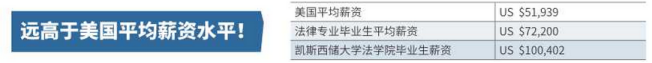 87% 的学生对毕业后找到合适的工作表示非常有信心(来自 Niche 统计)。毕业于凯斯西储大学法学院的学生平均薪资为 US$100,402 ,远高于美国的平均水平,其中知识产权方面的专业技能被雇主认为是最重要的技能之一。
