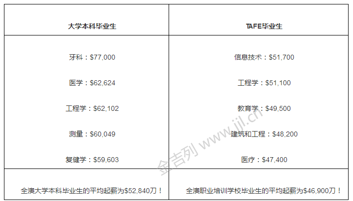 全澳大学本科毕业生的平均起薪为 $52,840刀! 全澳职业培训学校毕业生的平均起薪为 $46,900刀!