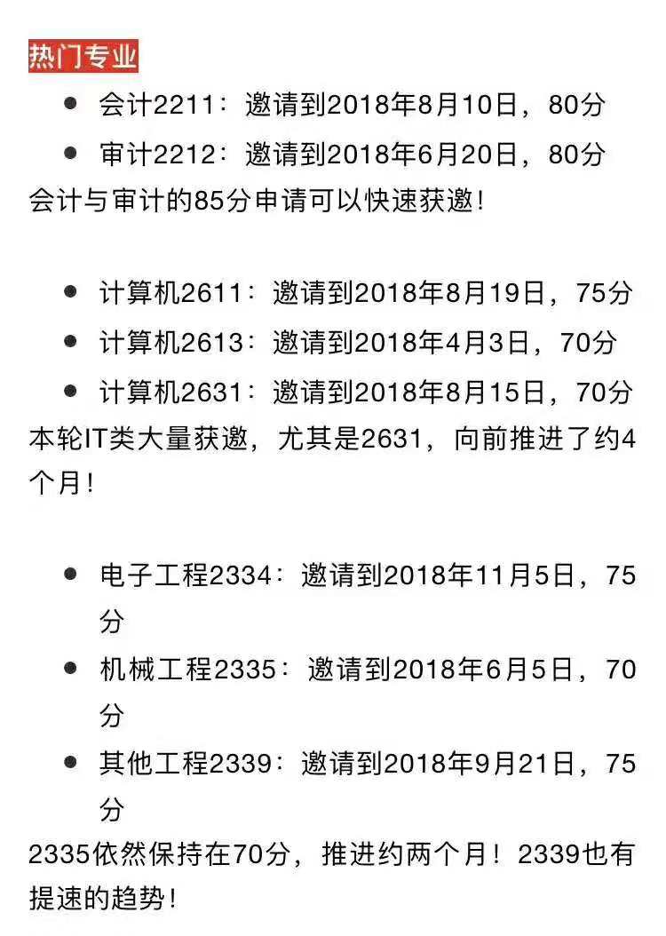 。工程类向前推进的较为明显,依然有部分职业可以看到70分获邀。