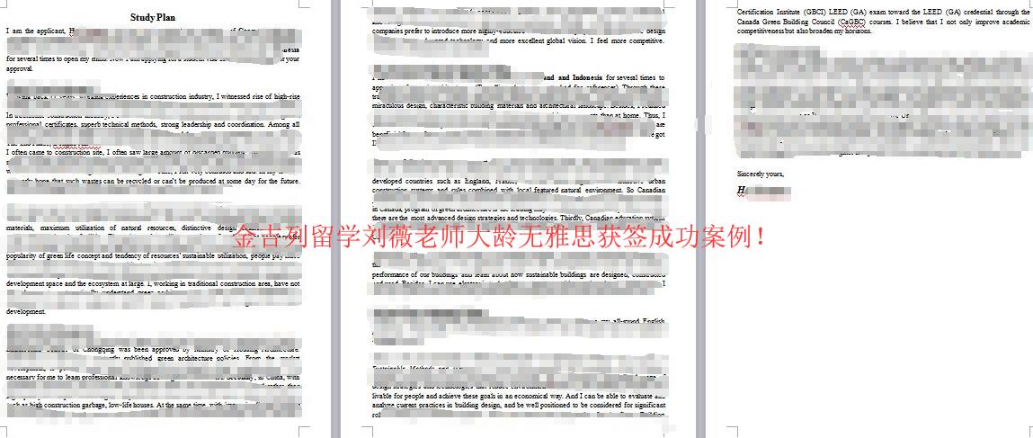 客户在 2013 年签约我们。签约之后一直忙于自己的事业,建筑工程。客户自己是重庆人,也常常重庆,武汉两地跑。所以签约之后合同一直没有启动。但是我们一直保留着客户的权利。 2017 年 3 月,客户下决心启动留学合同,在顺利拿到录取后,由于家庭原因(客户已婚,并且有一个孩子),还是决定延期。所以我第一时间办理了延期,而且是延期到 2018 年 10 月入学。在这期间,我也一直鼓励学生去学习雅思,考出比较理想的成绩。 2018 年 5 月,客户表示由于毕业的比较久,加之家庭和事业的压力,确实没有时间去考试。和在我多次电话沟通后,我们决定在准备后期签证的时候就格外注意,尤其是学习计划这一块。并且由老师选定了一位加拿大这边做大龄比较有经验的文书老师来操刀。