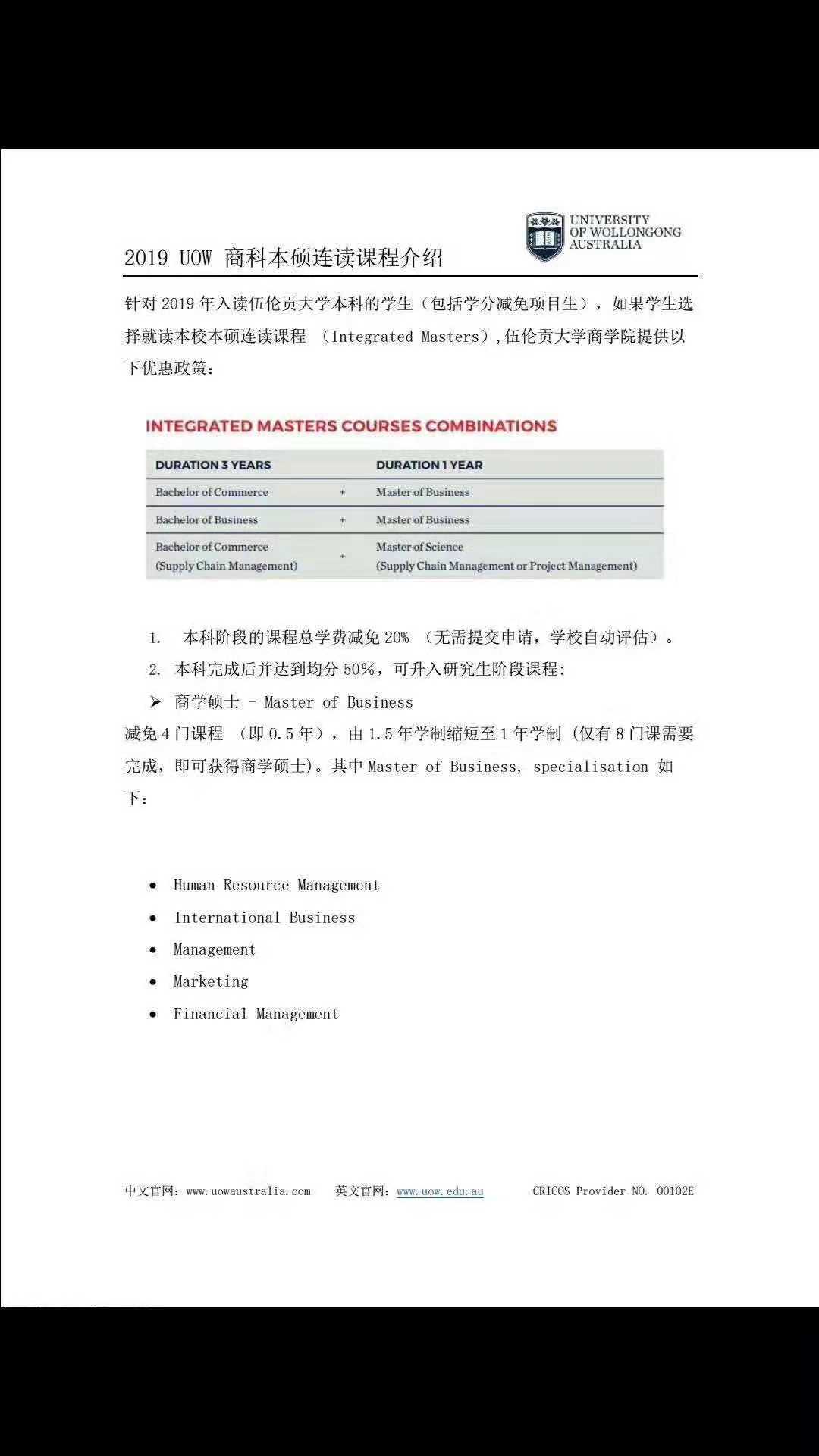 2019 伍伦贡大学商学院最新火爆课程 - Integrate Masters(本硕连读)