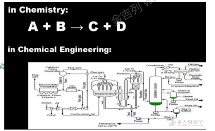“ 化学是A和B发生反应变成了C和D。而化学工程…是一个肉眼可见的庞大而复杂的工程体系。”