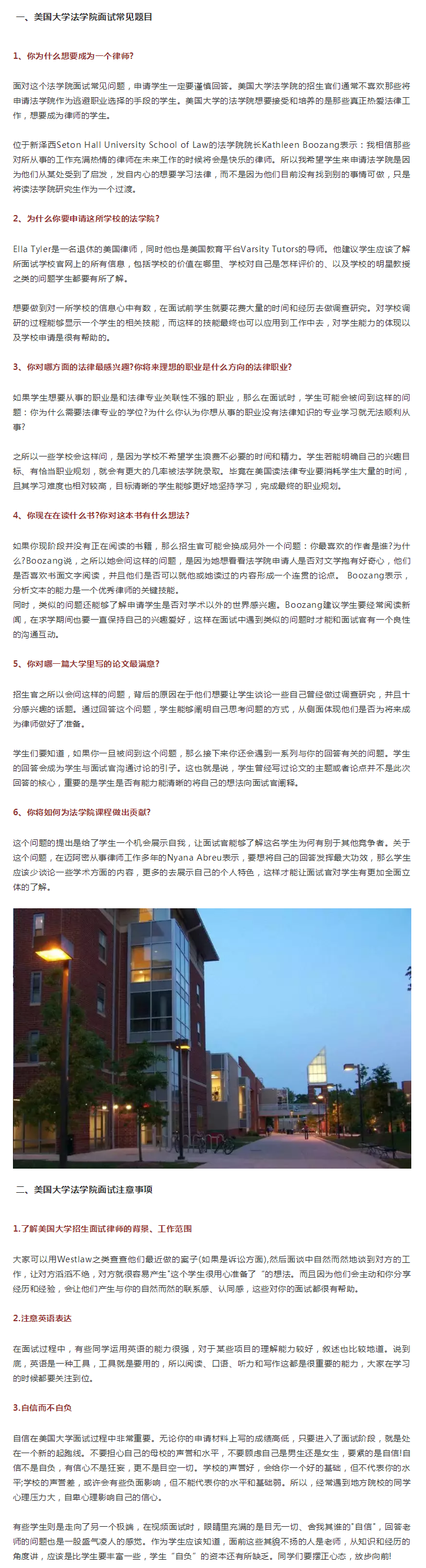 作为一项以法律为基础,以道德为准则,需要很强逻辑思维、表达能力的法律专业,美国硕士留学法学专业,面试环节,对最终录取有很大的影响。今天为大家盘点一下美国法学类专业面试的问题以及需要谨记的注意事项。
