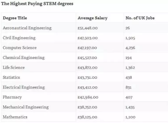 现在大部分英国大学都收取最高标准的学费,每年高达9000英镑,所以大部分学生都想毕业后能找份高薪的工作,也好让那昂贵的学费有所回报。高薪的工程学和市场需求量较大的技术学似乎是不错的选择,但数学和科学也同样不可忽视。