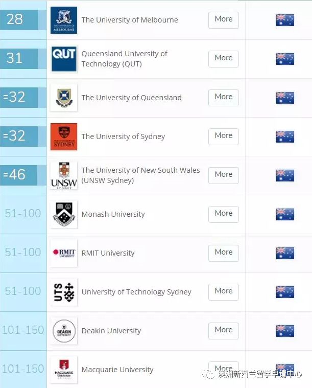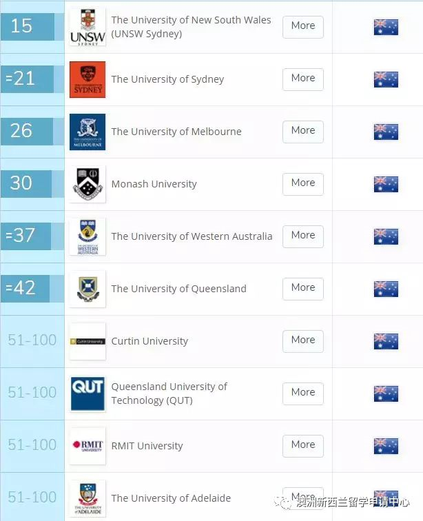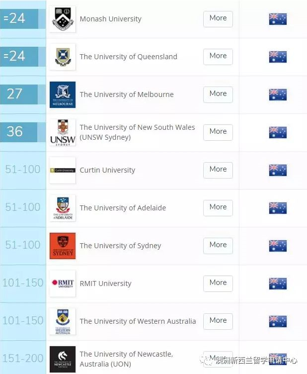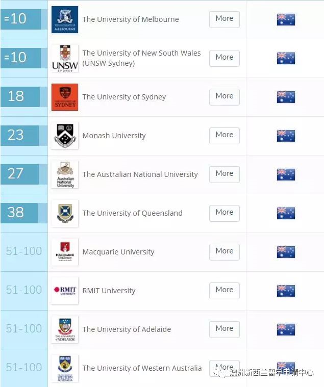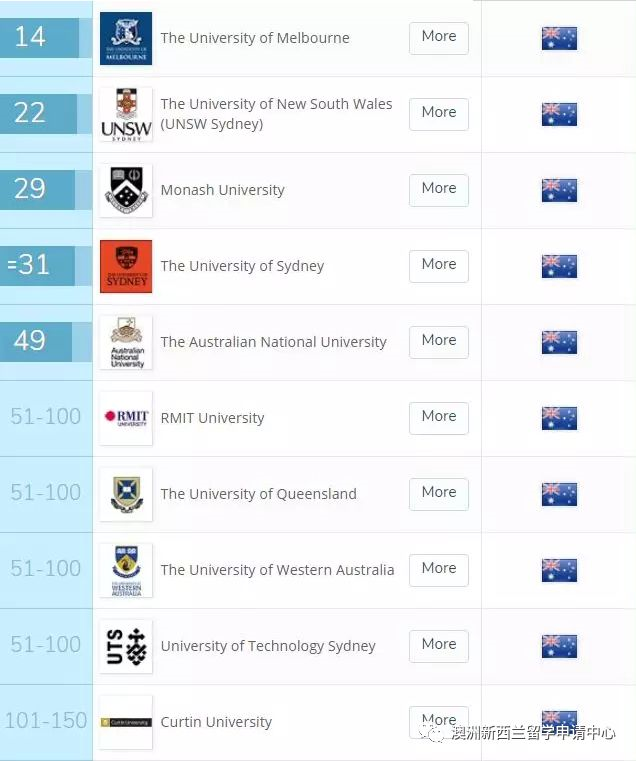 和去年一样,世界前50,澳洲占了4所大学,但是整体排名都上升了。