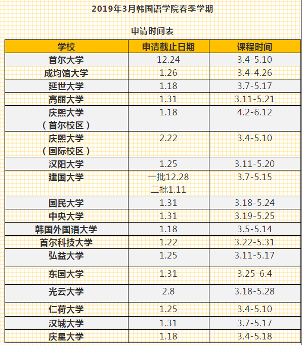 其中,延世大学(国际校区)、成均馆大学、高丽大学(世宗校区)、启明大学的语学院每年有6个学期,所以错过3月申请的宝宝不要灰心,可以继续申请5月的语言课程哦!另外,成均馆大学语学院对连续申请两期的语学生提供学费50%的减免哦,有没有开心到起飞~
