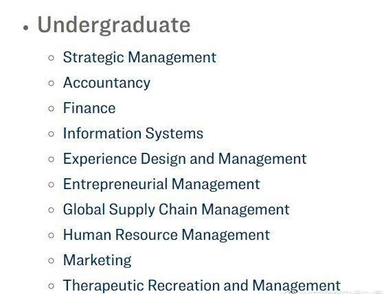 美国BYU/杨百翰大学商学院本科申请,杨百翰商学院本科新生不接受招生,大三开始才可以读以下专业。