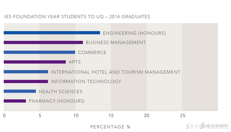 每个毕业班超过 85 % 的学生都能成功地进入 UQ 课程,学习各种课程和学院。校方数据研究表明, IES 预科班的校友平均 GPA 高于其他国际学生。