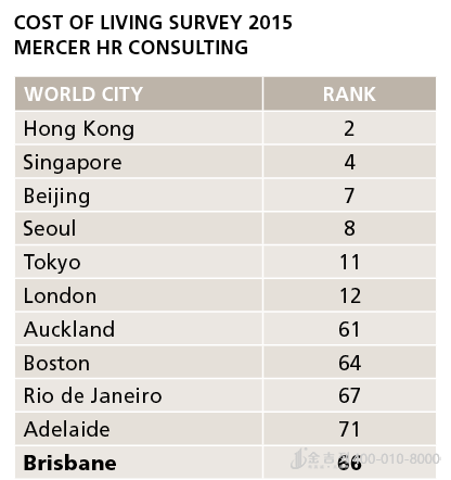 布里斯班的消费位于世界城市的第 66 位,远远低于香港、新加坡、北京等城市