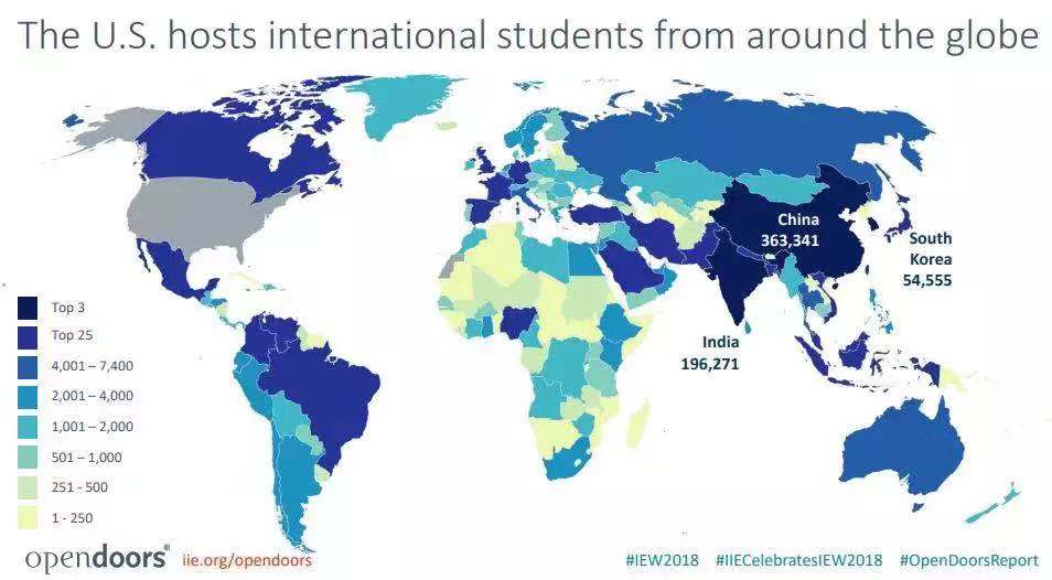 美国门户网站Open Doors每年都会发布全世界留学生数据报告,特别是赴美留学生数据。近期发布的新一季报告又再次体现了中国作为留学生生源输出国的地位,全世界共有109万名留学生在美国为自己的学业努力;而中国学生就有36万留学正在美国国土上学习生活。