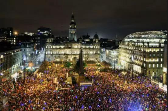 格拉斯哥的圣诞亮灯仪式在2018年11月18日星期日举行,在乔治广场。由于门票需求量一直很大,门票也是通过公共投票方式分发的。据官方说,投票现在已经关闭了,成功申请的将在10月24日收到通知。