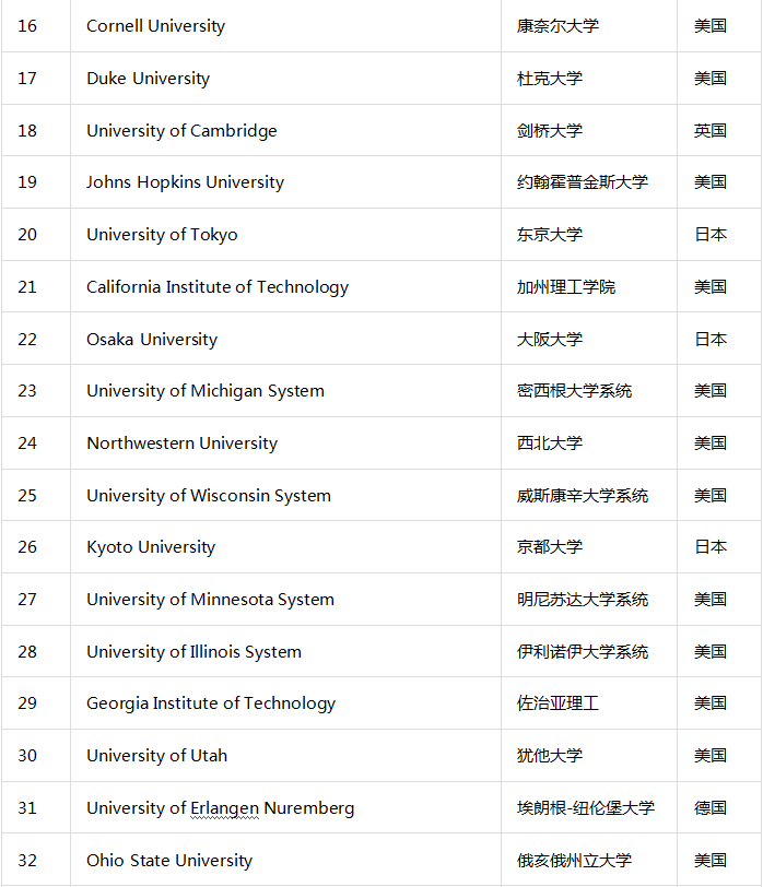 在亚洲,中国的大学得益于政府对创新大力推动、以及对专利申请的重视,有5所(清北复交浙)高校上榜。尽管我们国内高等教育快速发展,但依然有很多需要向美国学习,美国在科技创新方面仍然处于领跑地位。