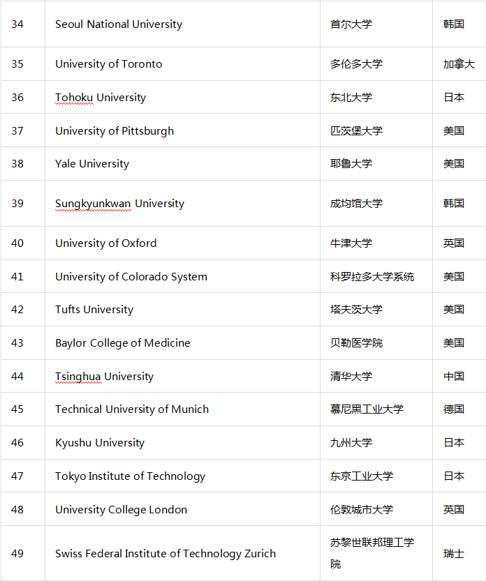 全球创新大学部分排名