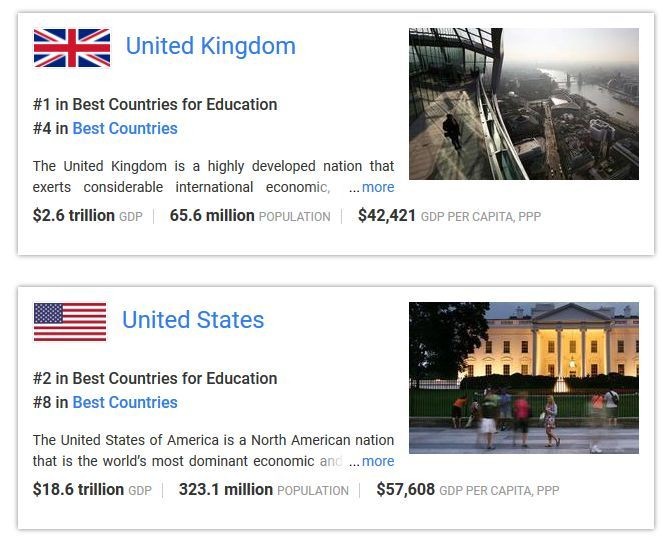 由 US News 评选的,一年一度的世界最佳国家( Best Countries 2018 )榜单新鲜出炉啦。榜单涵盖世界各大强国从综合到各个方面实力的排名。今年,英国以其享誉全球的高水平教育质量力压美国,成为 2018 世界教育最佳的国家( Best Countries for Eucation )!下面跟 金吉列留学老师 一起了解一下这个排名吧。