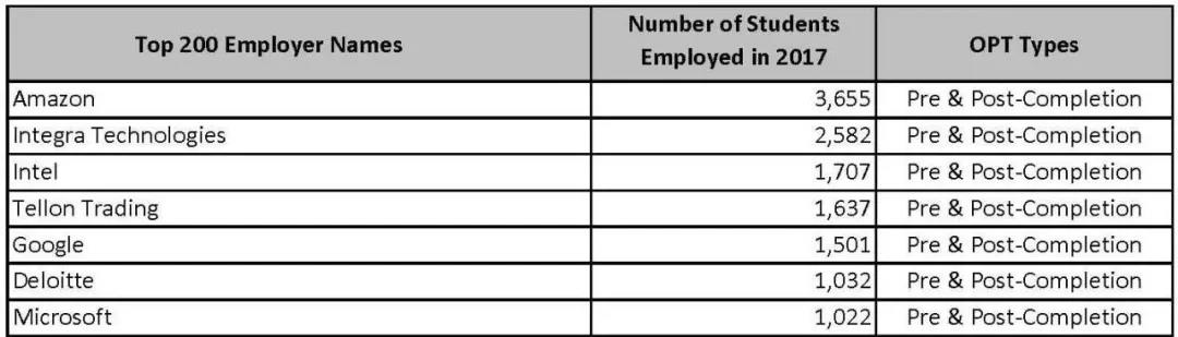 对留学生而言,在2017年,亚马逊是全美国雇佣OPT留学生最多的美国企业,也是雇佣STEM OPT留学生比例最多公司。