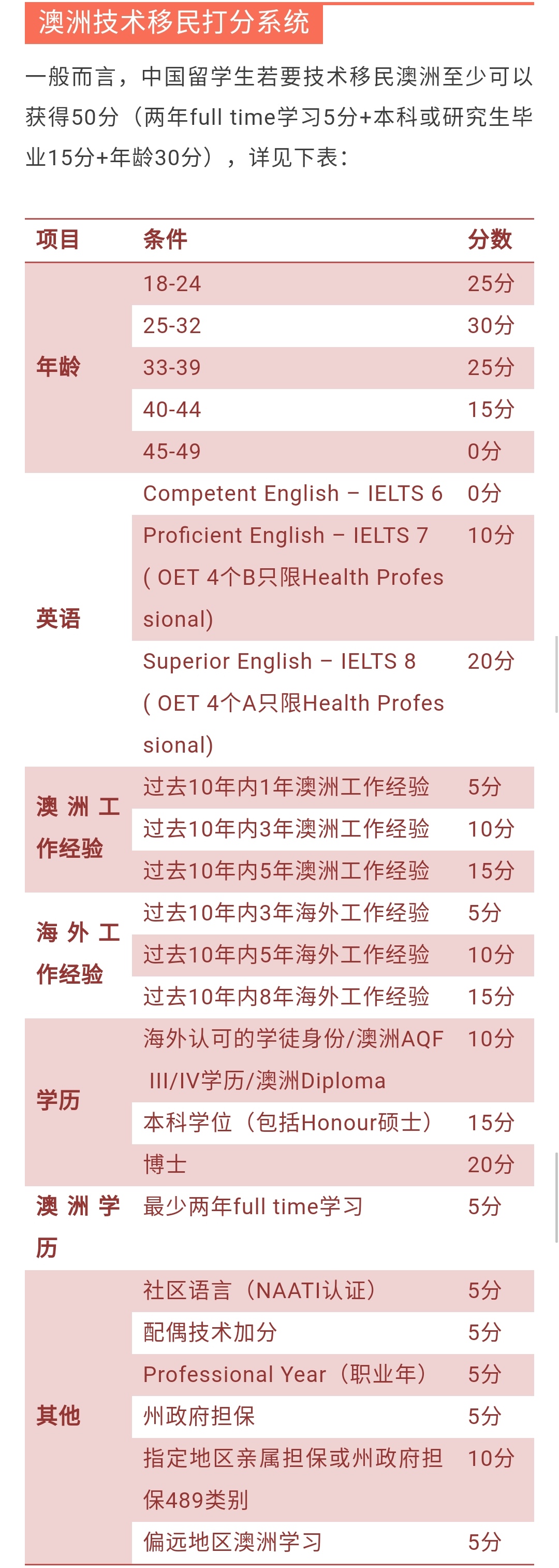 作为一个世界上相对容易成功移民国家之一 , 澳洲一直是中国留学生热衷的留学和移民目的地 。 对于澳洲技术移民你了解多少呢 ? 技术移民有哪些加分项目 ? 每个项目怎么加分 ? 澳洲留学生又该如何为移民铺路 ?