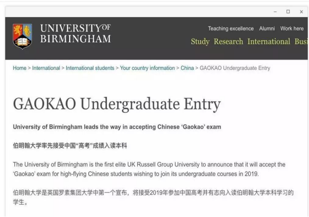 虽然对于中国学生而言,尤其是准备高考、留学齐头并进的同学,这绝对是福音,但想要通过高考进入伯明翰大学,要求也相当严苛。