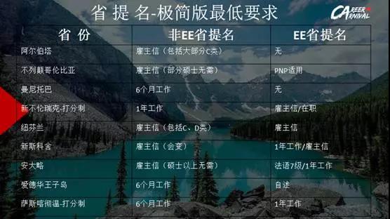 加拿大各个省为了本身经济的发展,于是制定了有利于本身经济发展的移民政策,就是我们通常所说的省提名(PNP)移民。各个省的省提名不完全相同,留加的同学们也得根据适合自己的省提名提前选择。
