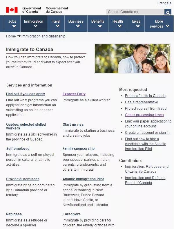 官网上列出了9类移民种类,其中与留学生相关的是快速通道联邦移民打分系统以及省提名。